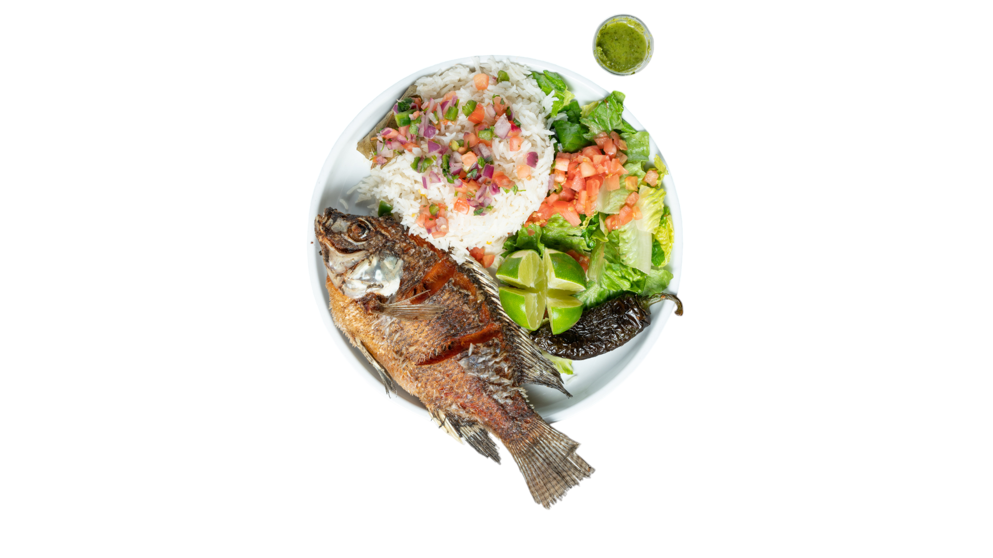 Fried Fish ( Whole Tilapia) Rice,Salad,Tortilla,12oz Coke,Jalapeno.