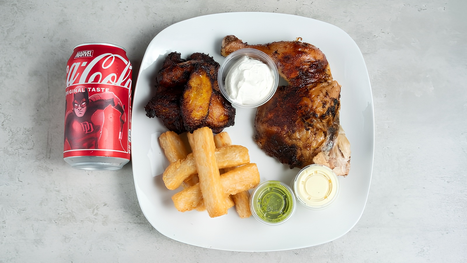 1/4 Chicken Yuca & Plantains +12oz coke